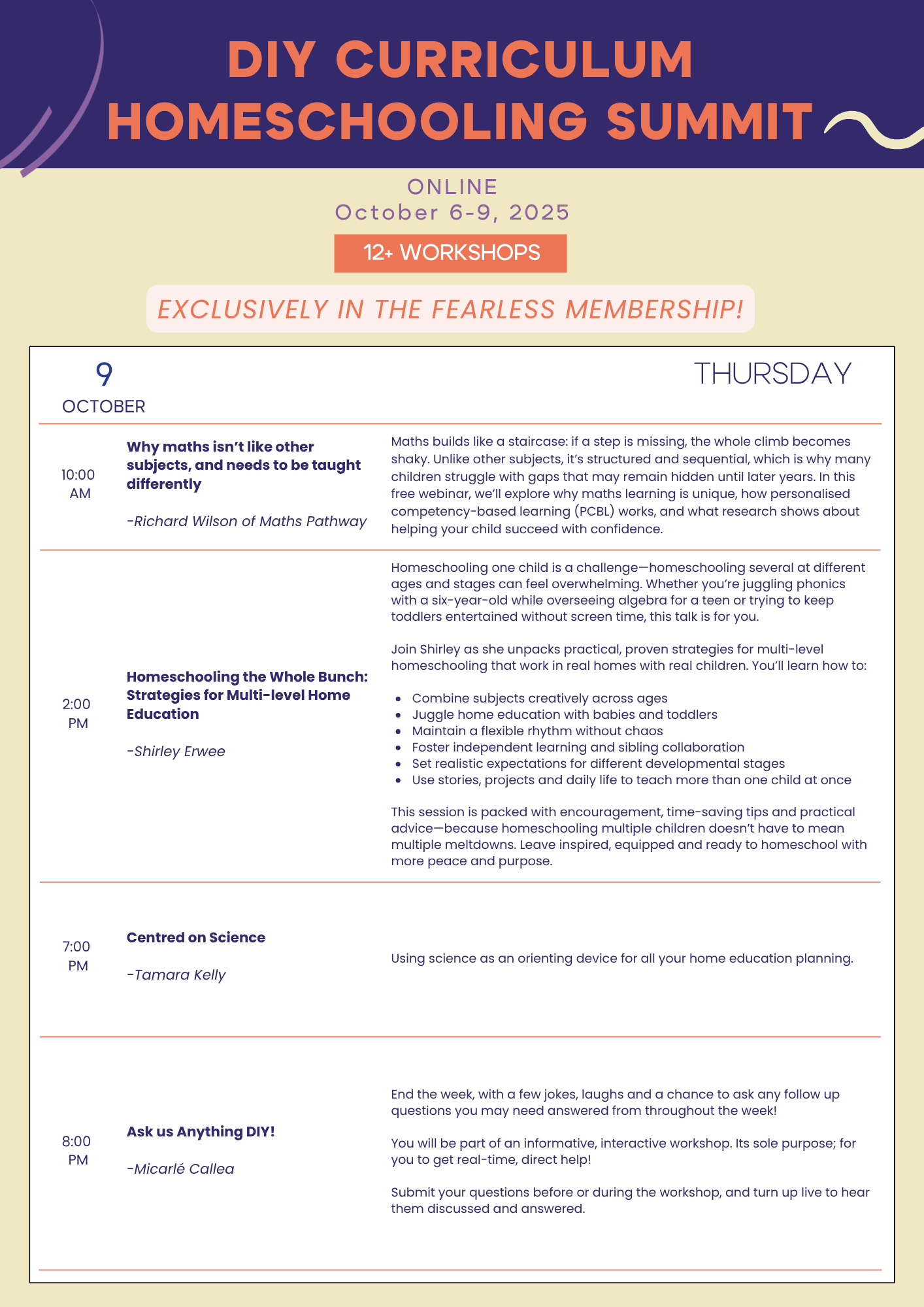 🌟 Access to ALL Summits – past, present, and future—now exclusively for Fearless Members -That means this DIY Homeschooling Summit and next year’s 2026 Neurodiversity Homeschooling Summit